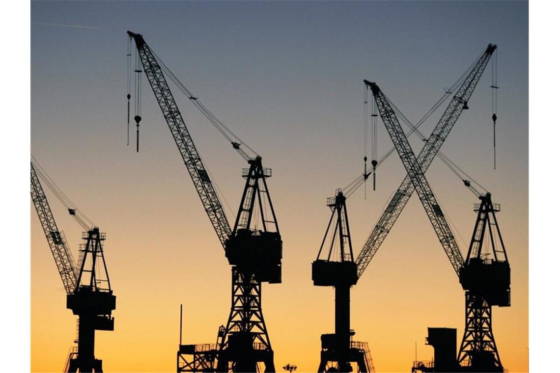 Die Silhouetten von Hafenkränen in Hamburg. Foto: Sebastian Widmann