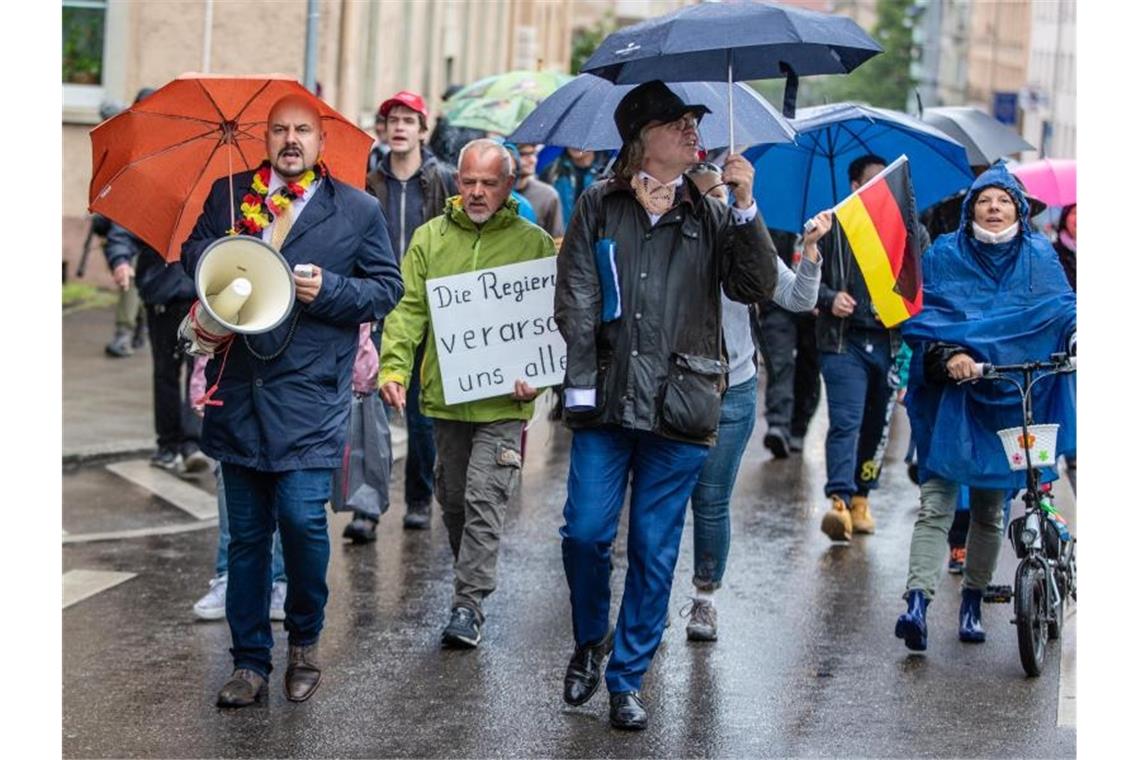 Menschen nehmen an einer Demonstration gegen Corona-Beschränkungen teil. Foto: Christoph Schmidt/dpa/Archivbild