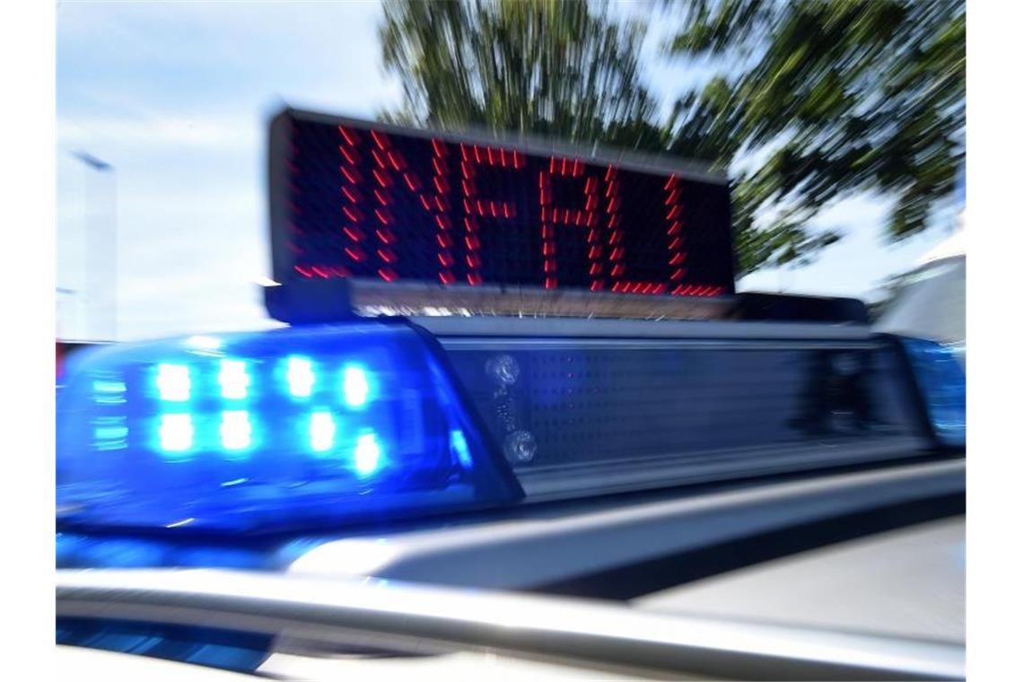 Blaulicht und LED-Laufschrift „Unfall“ an einem Einsatzfahrzeug der Polizei. Foto: Holger Hollemann/dpa/Symbolbild