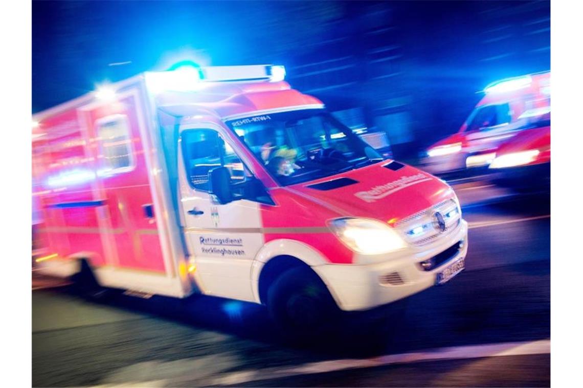 Ein Rettungswagen fährt mit Blaulicht über eine Straße. Foto: Marcel Kusch/dpa/Illustration