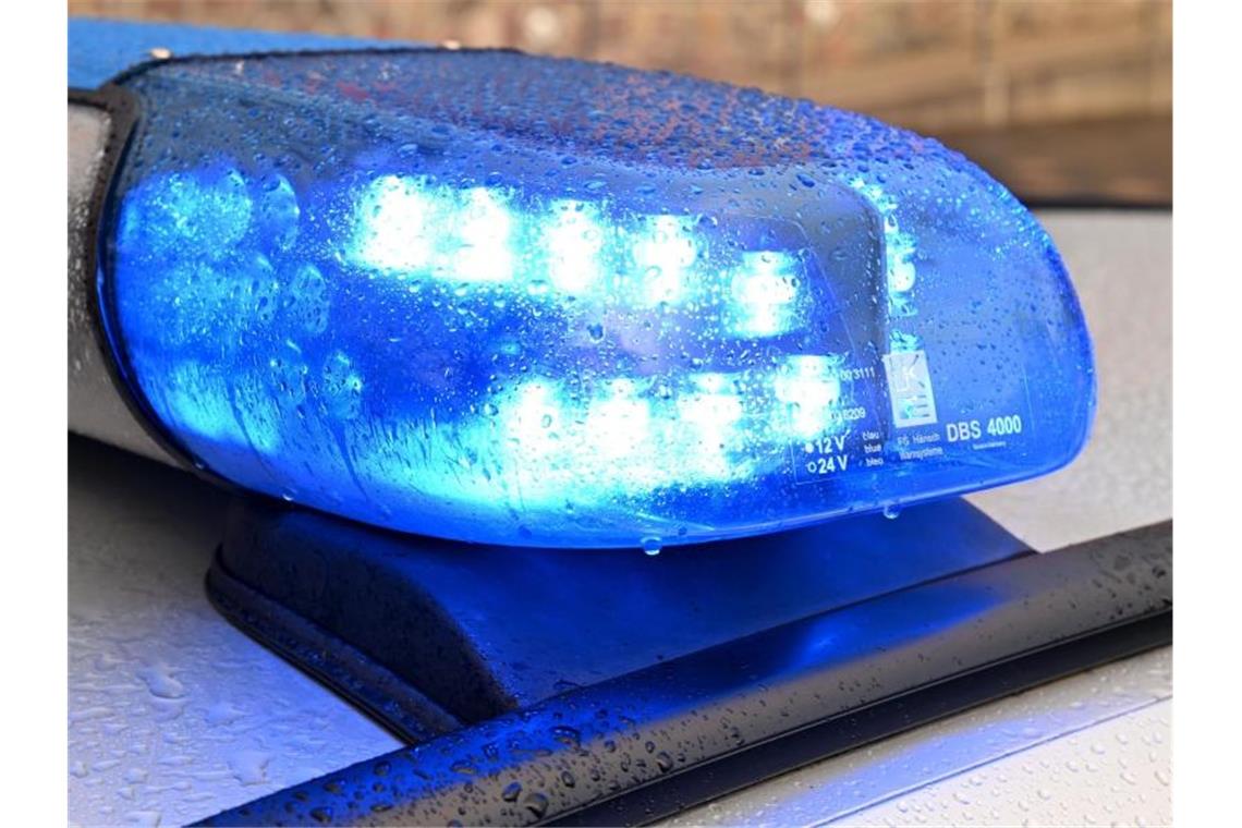 Ein Streifenwagen der Polizei steht mit eingeschaltetem Blaulicht an einem Einsatzort. Foto: Carsten Rehder/dpa/Symbolbild