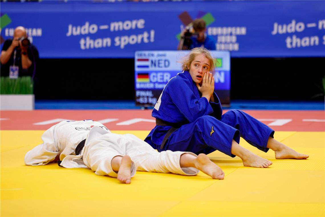 Der ungläubige Blick zum Trainer: Sara-Joy Bauer ist U-21-Europameisterin.