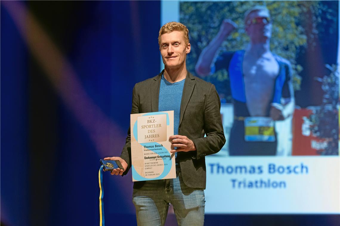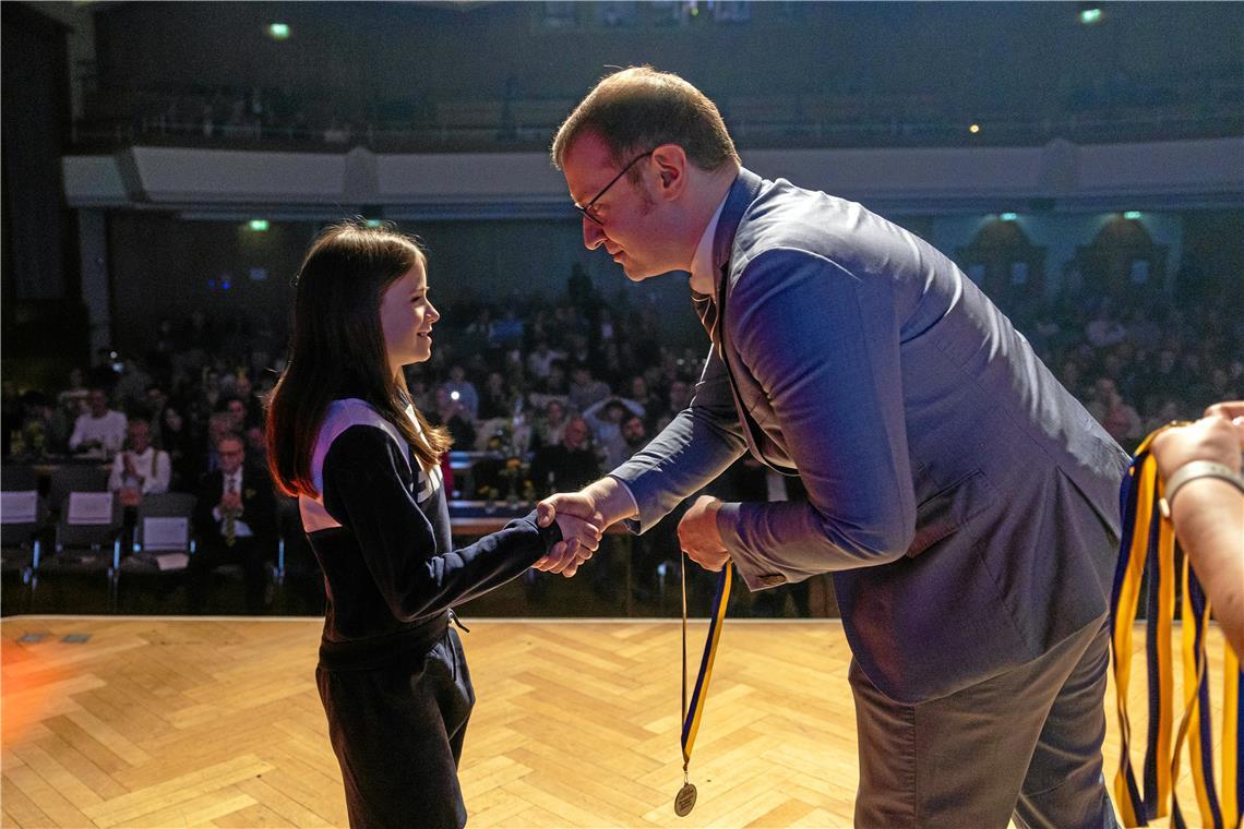 Es war wieder ein Ehrungsmarathon, den Maximilian Friedrich bei der 32. Backnanger Sportparty zu bewältigen hatte. Der Oberbürgermeister übergab Medaillen an insgesamt 214 Athletinnen und Athleten, die im Vorjahr große Erfolge gefeiert haben. Der abschließende Höhepunkt war die Bekanntgabe der BKZ-Sportler des Jahres durch Redaktionsleiter Kornelius Fritz. Bei den Frauen siegte Judoka Sara-Joy Bauer von der TSG Backnang und bei den Männern der Triathlet Thomas Bosch vom TC Backnang. Bei den Mannschaften hatten die Drittliga-Handballer des HC Oppenweiler/Backnang die Nase vorne. Aufgelockert wurde die Veranstaltung durch verschiedene Showauftritte. Die Bildergalerie mit Fotos unseres Fotografen Alexander Becher liefert viele Impressionen.