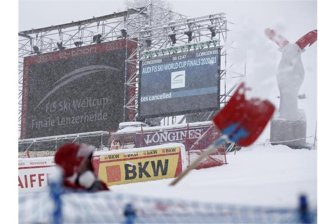 dpa Lenzerheide. Heftige Schneefälle in Lenzerheide haben die Ski-Asse um die letzten Abfahrten des Winters gebracht. Die Kristallkugeln wurden kampflos vergeben. Auch im Gesamtweltcup haben die Absagen Auswirkungen.
