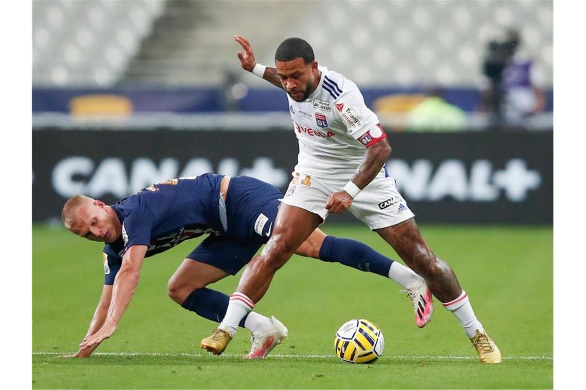 Der niederländische Nationalspieler Memphis Depay (r) ist Kapitän bei Olympique Lyon. Foto: Francois Mori/AP/dpa