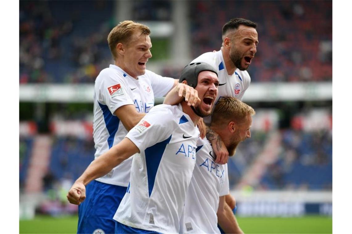 Hansa Rostock setzte sich überraschend bei Hannover 96 durch. Foto: Daniel Reinhardt/dpa