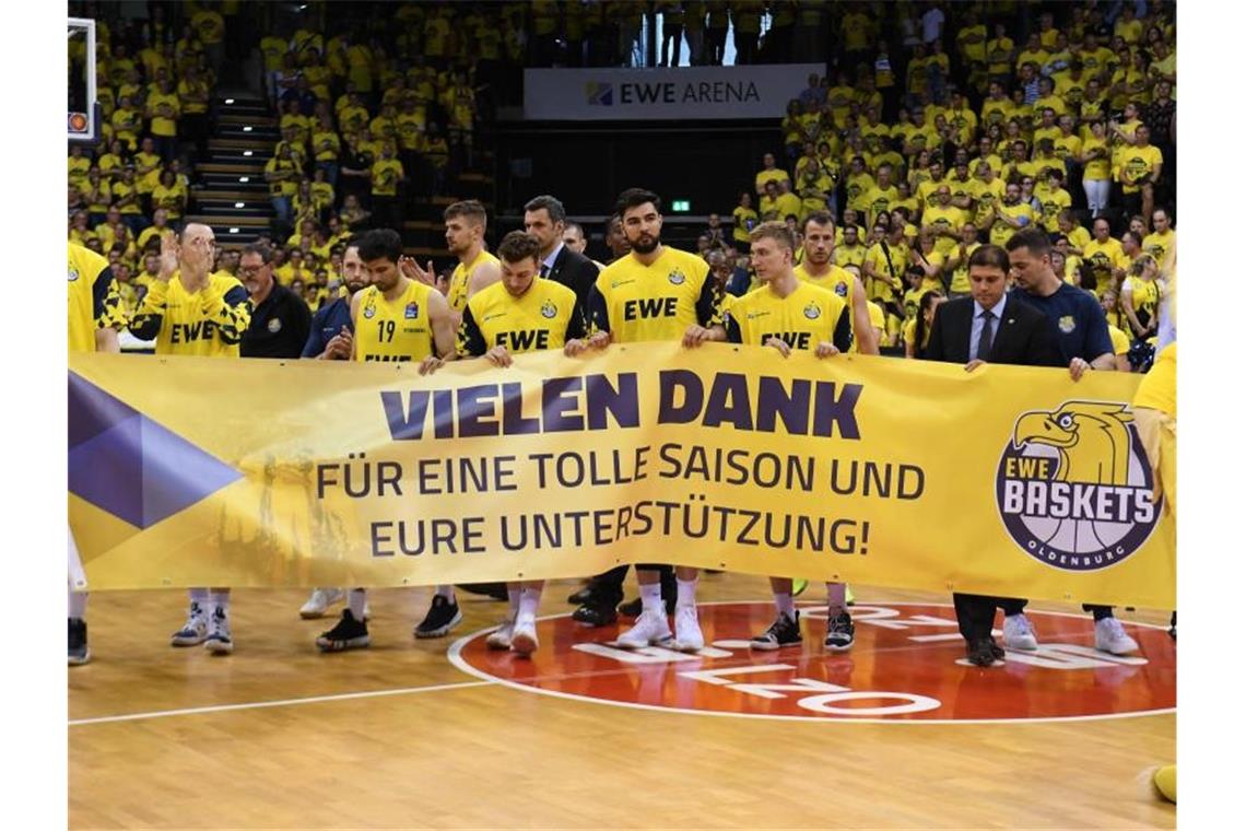 Oldenburgs Spieler bedanken sich nach Spielende bei den Fans. Foto: Carmen Jaspersen