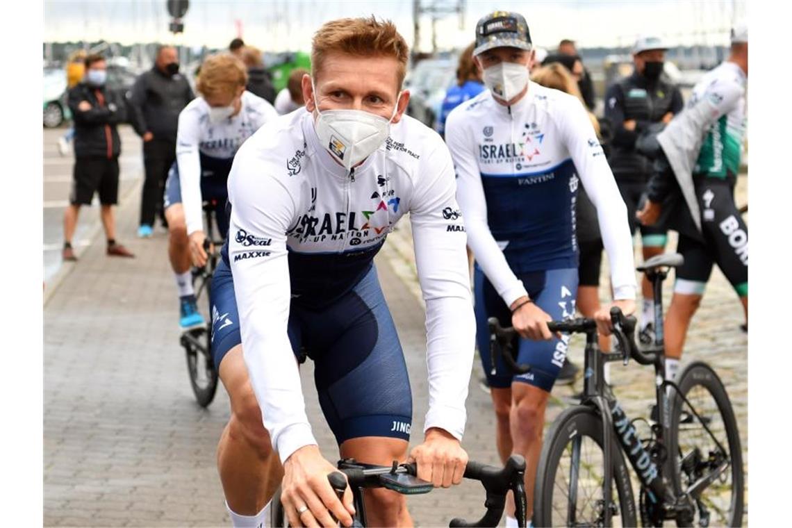 Starten gemeinsam für das Team Israel Start-Up Nation bei der Deutschland Tour: André Greipel und Chris Froome (hinten). Foto: Bernd Thissen/dpa