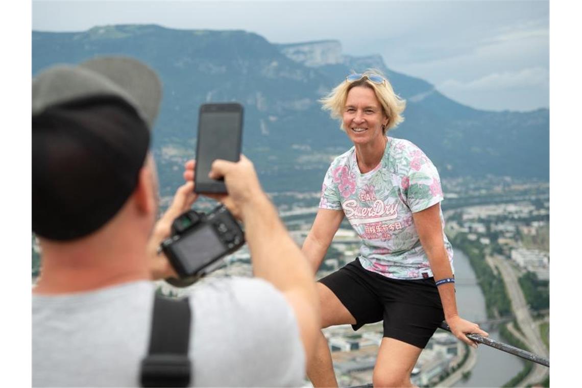 Bundestrainerin Martina Voss-Tecklenburg bei einer Tour durch Grenoble. Foto: Sebastian Gollnow
