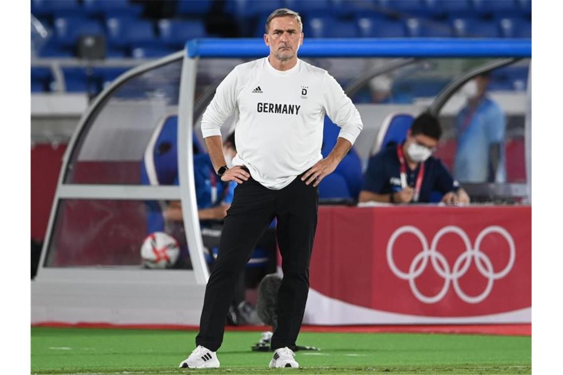 Stefan Kuntz, Trainer der deutschen Mannschaft, steht am Spielfeldrand. Foto: Swen Pförtner/dpa