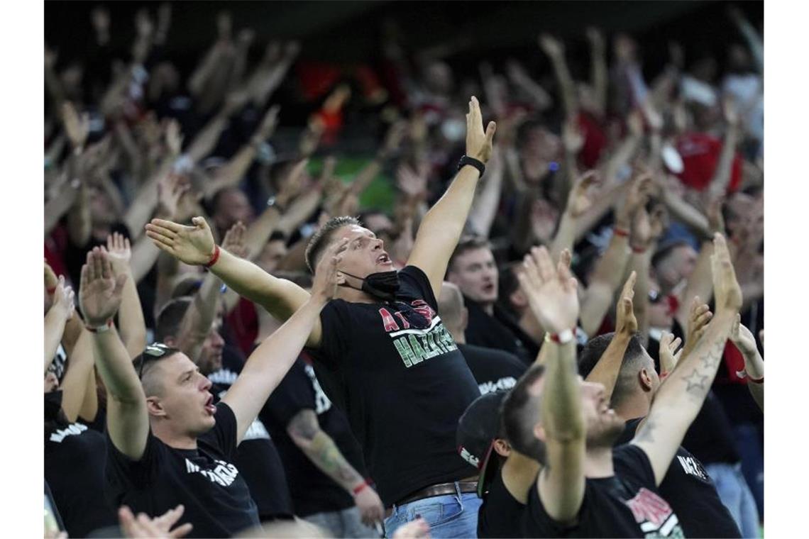 Einige ungarische Fans geben bei der EM kein gutes Bild ab. Foto: Matthias Schrader/Pool AP/dpa