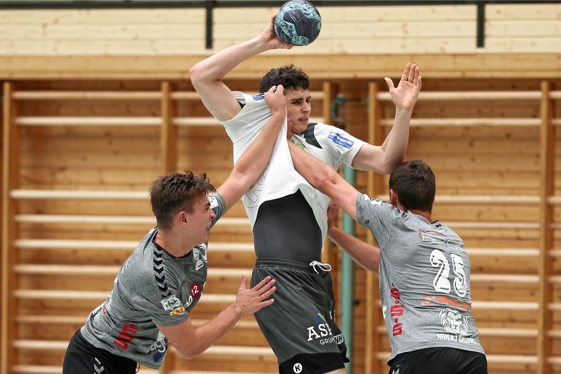 Rückraumspieler Isaiah Klein (am Ball) hat einige schöne Tore erzielt, muss dann aber aufgrund einer Handverletzung raus. Foto: A. Becher