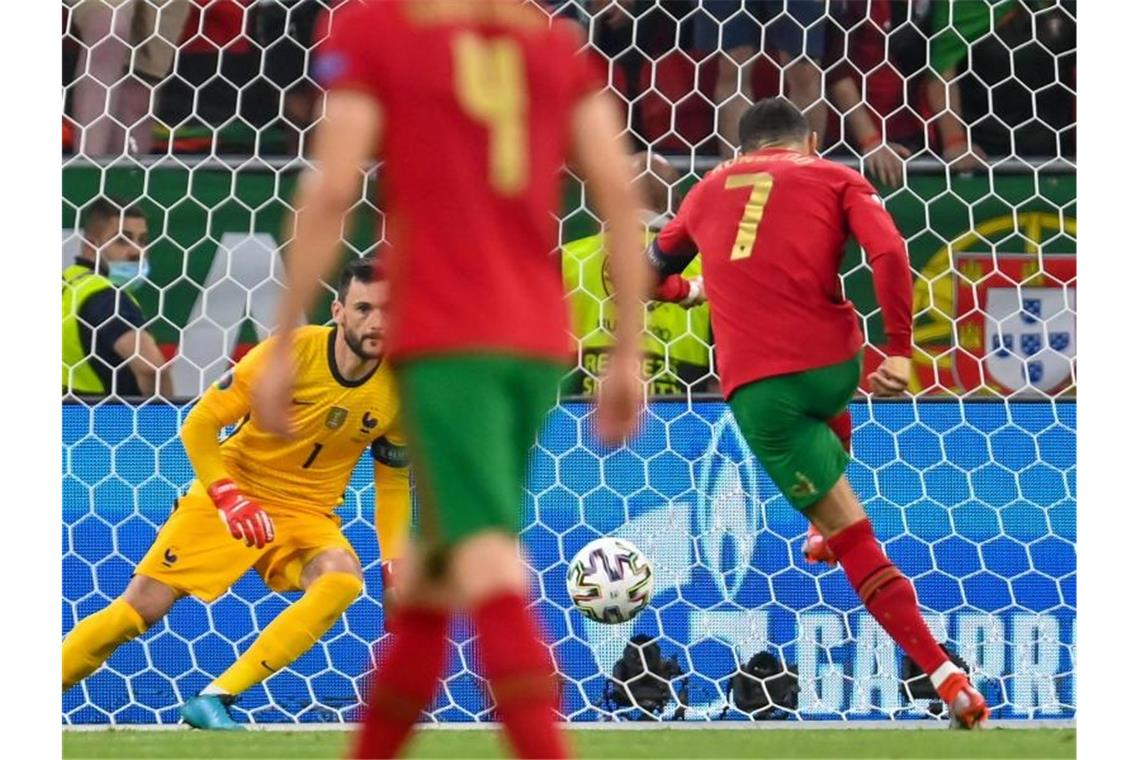 Portugals Cristiano Ronaldo verwandelt gegen Frankreich zwei Elfmeter. Foto: Robert Michael/dpa-Zentralbild/dpa