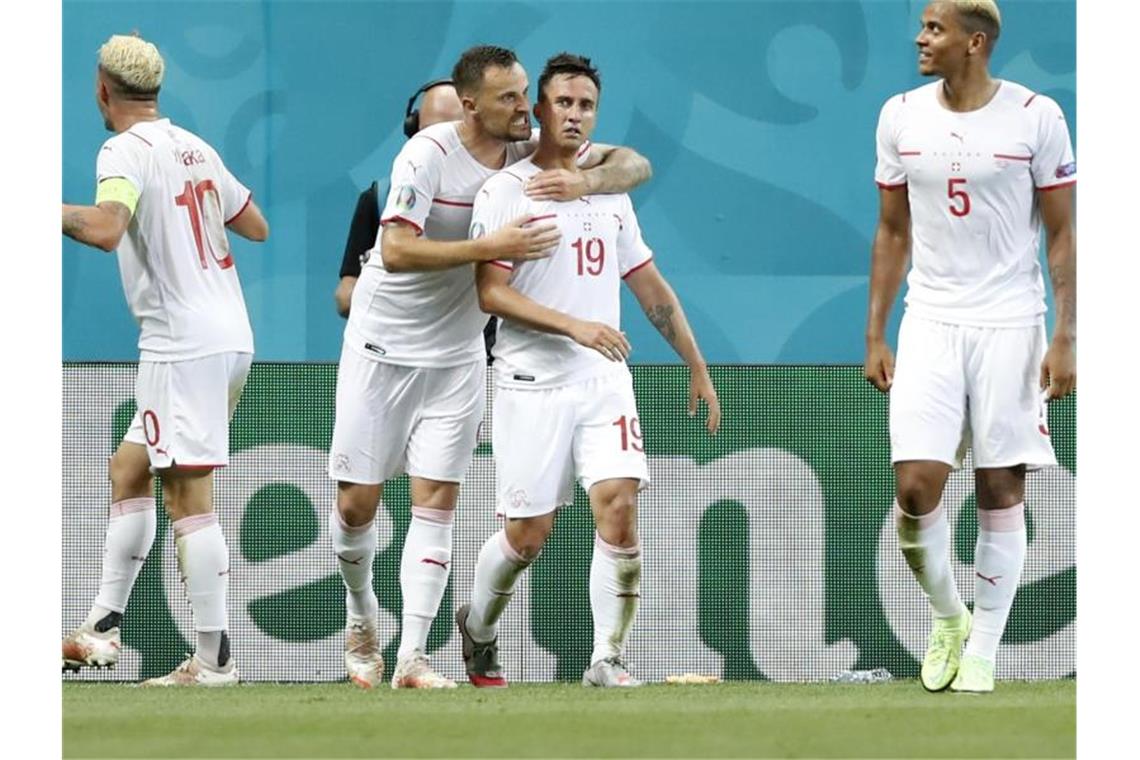 Die Schweizer haben das Achtelfinale gegen Frankreich im Elfmeterschießen gewonnen. Foto: Robert Ghement/Pool EPA/dpa
