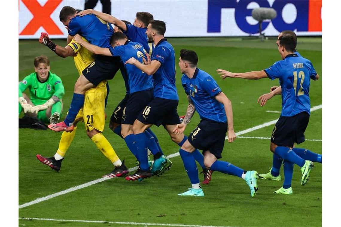 Nach einem Strafstoß-Drama in Wembley gegen England haben die Azzurri den Fußball-Tempel in Schockstarre versetzt und mit ihren Fans den zweiten EM-Titel nach 1968 gefeiert.