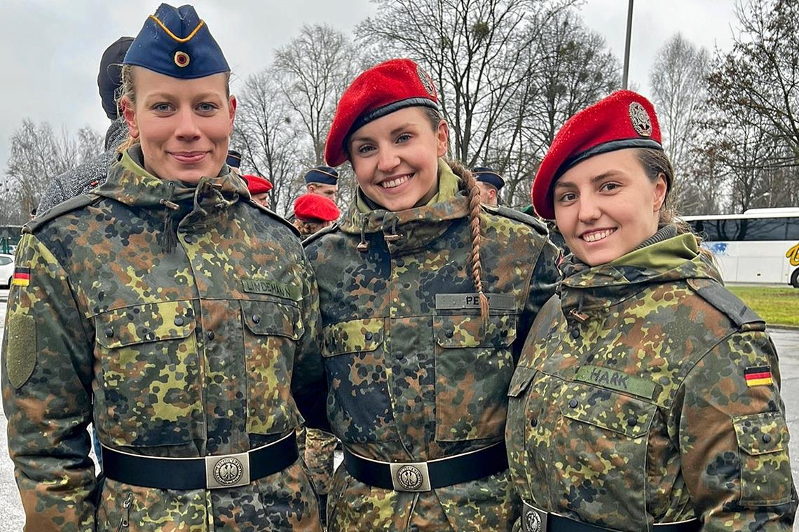 Die Grundausbildung bei der Bundeswehr hat Emelie Petz (Mitte) gut bewältigt. Nun hofft die 19-Jährige ihr Können demnächst auch als Turnerin wieder zeigen zu können. Foto: privat