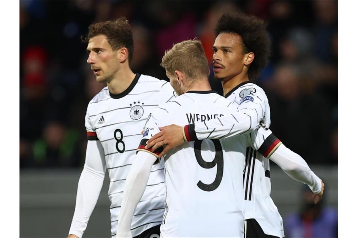 Der DFB-Sturm um Timo Werner (M.) und Leroy Sané (r) läuft wieder runder. Foto: Christian Charisius/dpa