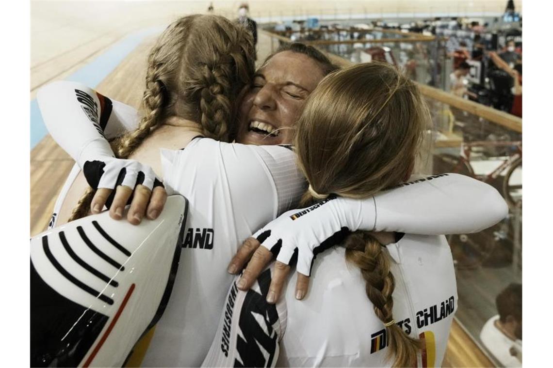 Das deutsche Team hatte bei der Bahnrad-WM viel Grund zum Jubeln. Foto: Thibault Camus/AP/dpa