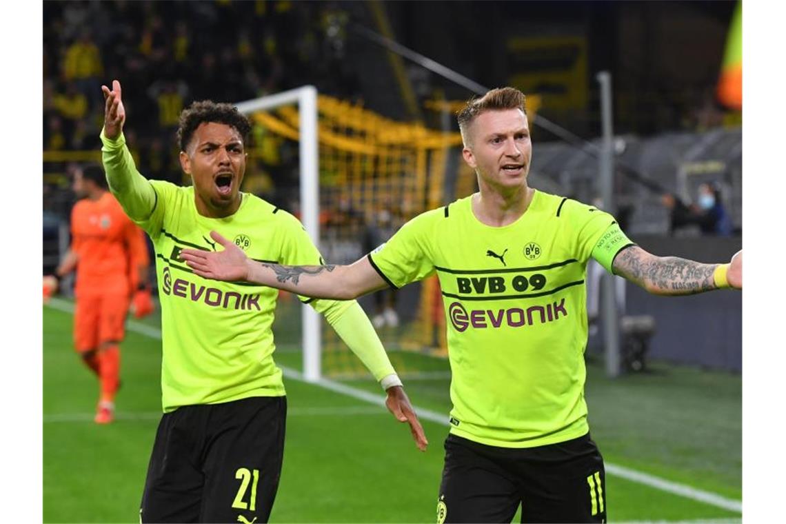 Antonio Adan (r) brachte den BVB in Führung. Foto: Bernd Thissen/dpa