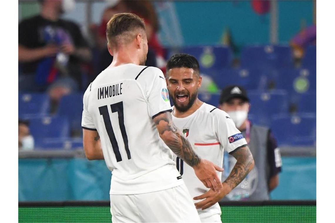Die Italiener um Lorenzo Insigne (r) und Ciro Immobile wollen ins EM-Halbfinale. Foto: Alberto Lingria/Pool Reuters/AP/dpa
