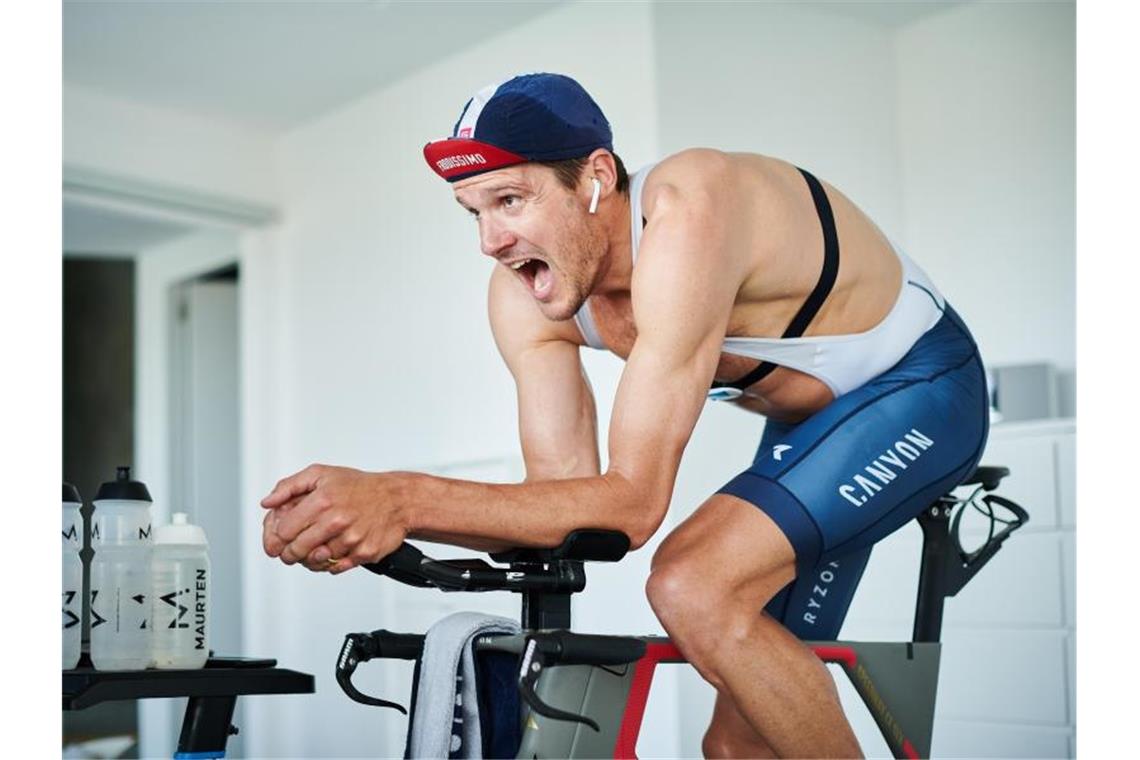 Auf dem Rollentrainer will Jan Frodeno 180 Kilometer fahren. Foto: Felix Rüdiger/dpa