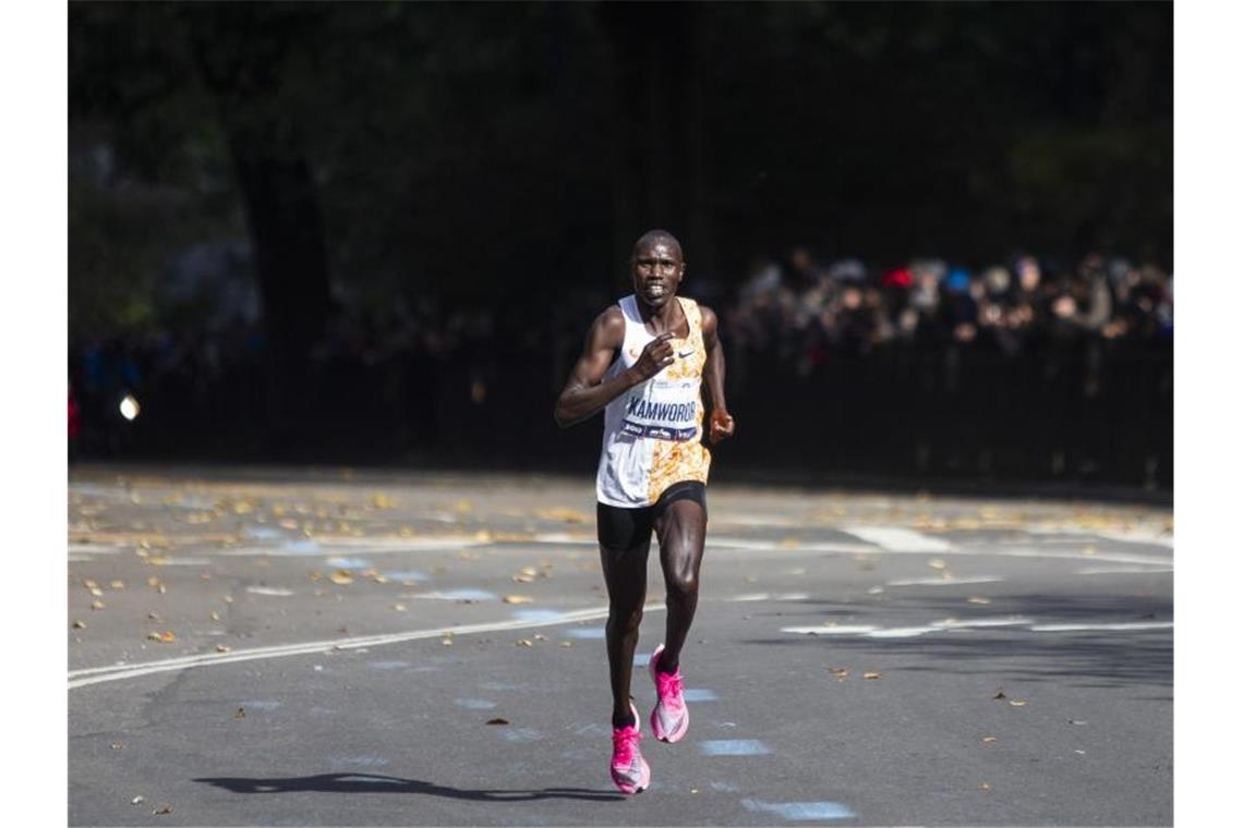 Kenias Laufasse haben beim New-York-Marathon durch Geoffrey Kamworor und Debütantin Jepkosgei einen souveränen Doppelsieg gefeiert. Foto: Eduardo Munoz Alvarez/AP Photo;/dpa