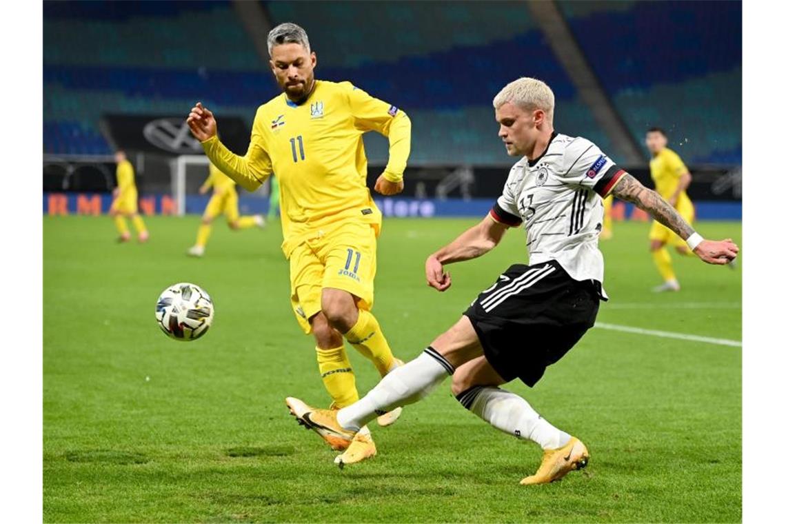 Auf sieben Positionen hatte Löw die Startelf im Vergleich zum Tschechien-Spiel, das ebenfalls in Leipzig stattfand, verändert. Doch gegen die tief stehenden Ukrainer hatten die Deutschen zwischenzeitlich Schwierigkeiten beim Aufbauspiel und dabei, Geschwindigkeit in ihre Offensiv-Aktionen zu bringen.