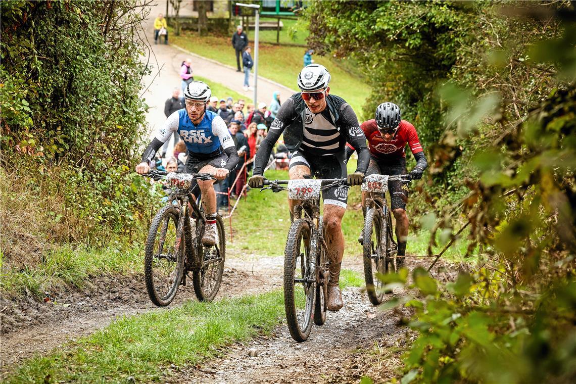 Im Wettstreit mit Spezialisten für knackige Anstiege und rasante Singletrails, die andauernd auf matschigen Wald- und Wurzelwegen unterwegs sind, ist das keine Selbstverständlichkeit. Nach der ersten Runde ist das Duo aus dem Nachbarland aber auf Kurs und führt die dritte Gruppe an – davor zwei Trios, die rund 20 Sekunden trennen. Mit an der Spitze: Lukas Adrion. Der für die RSG Heilbronn startende Backnanger, der auch vor allem auf der Straße aktiv ist, setzt sich anschließend zusammen mit Lukas Koller aus Kirchheim unter Teck ab. „An einem der steilsten Berge habe ich in der dritten Runde attackiert und ihn distanziert“, berichtet der 34-Jährige, der bislang stets nur zwei Runden gedreht und Platz zwei belegt hat. Nun also Erster in 3:35:04 Stunden – und das bei schwierigen Bedingungen mit „richtigen Matschlöchern. Die Steuerkünste waren ausschlaggebend. Der Erfolg wäre ohne Hannes Schneider von Radsport Schneider, der mein Bike noch einmal top eingestellt hat, nicht möglich gewesen.“ Und die zwei Niederländer? Werden Sechster und Siebter, mit den Top Ten hat es also geklappt.