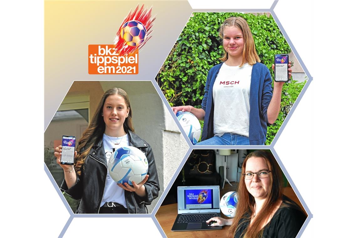 Lehrerin Annabell Etter sowie die Schülerinnen Annalena Leventic (links) und Lilli Grün von der Klasse 9b der Schickhardt-Realschule Backnang sind beim EM-Tippspiel unserer Zeitung in der Einzel- und in der Schulklassenwertung dabei. Fotos: T. Sellmaier/Grafik: S. Horn
