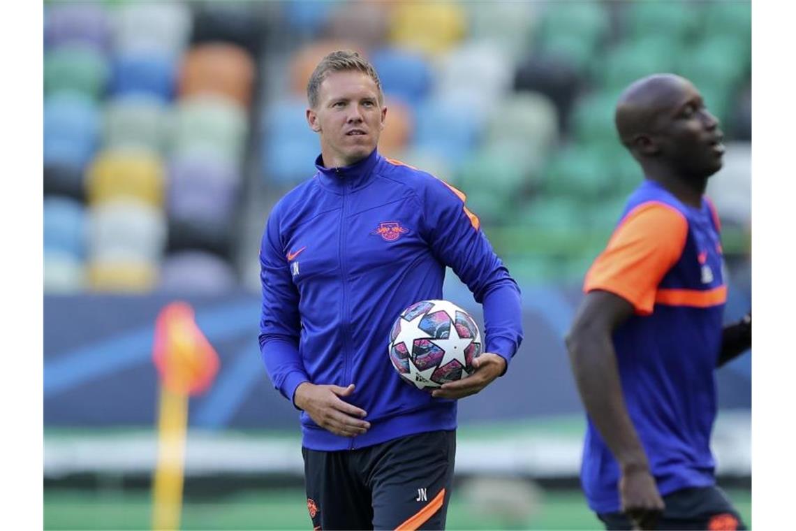 Hat mit Leipzig Atlético Madrid vor der Brust: RB-Coach Julian Nagelsmann. Foto: Miguel A. Lopes/Pool EPA/AP/dpa