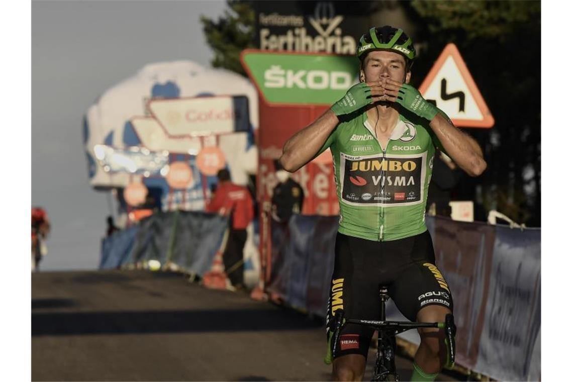 Hat bei der 75. Spanien-Rundfahrt seinen zweiten Tagessieg eingefahren: Vorjahressieger Primoz Roglic. Foto: -/Pool BELGA/dpa