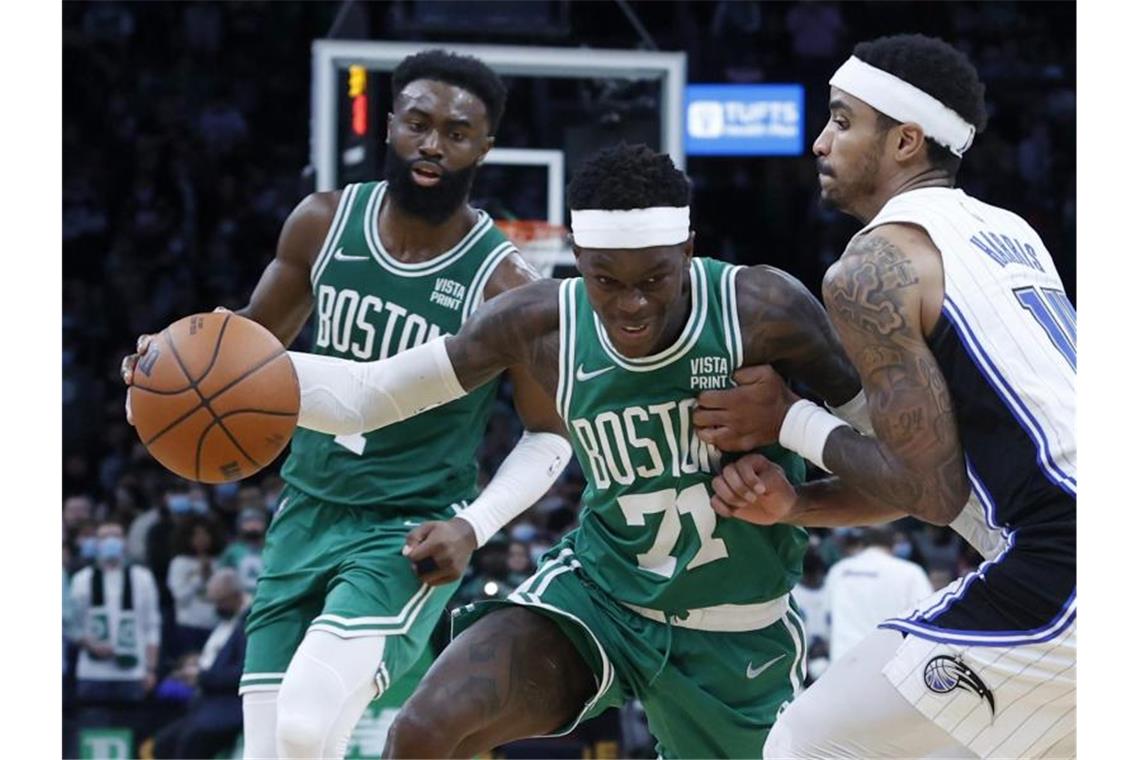 dpa Boston. Basketball-Profi Dennis Schröder von den Boston Celtics hat das deutsche Duell in der NBA gegen Franz und Moritz Wagners Orlando Magic für sich entschieden.