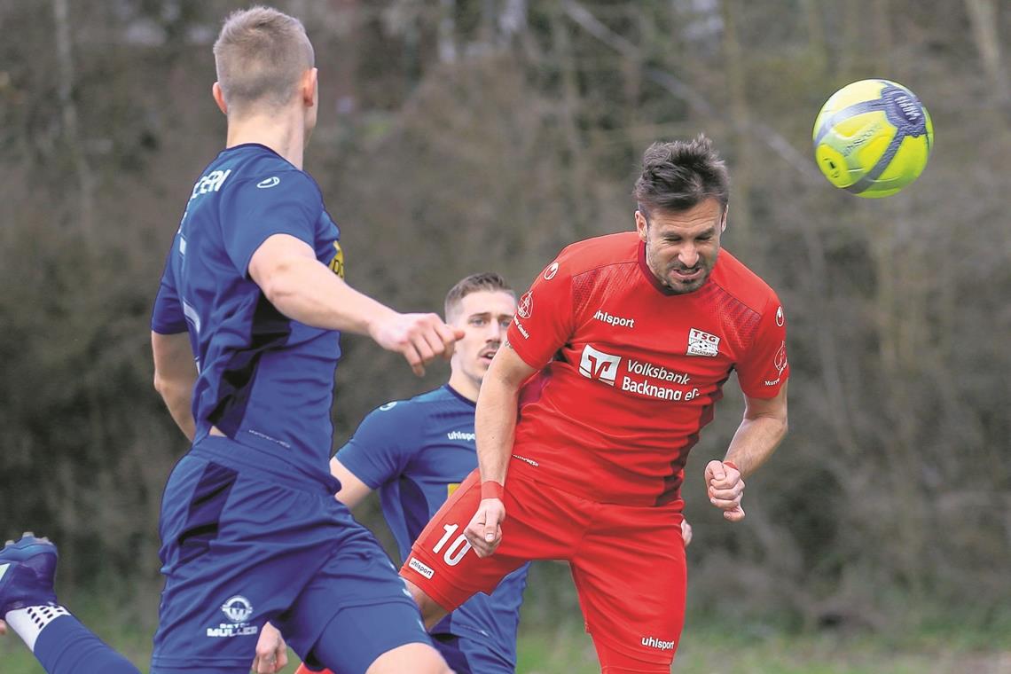 Backnangs Torjäger Mario Marinic köpft in dieser Szene zum 1:0 ein.Foto: A. Becher