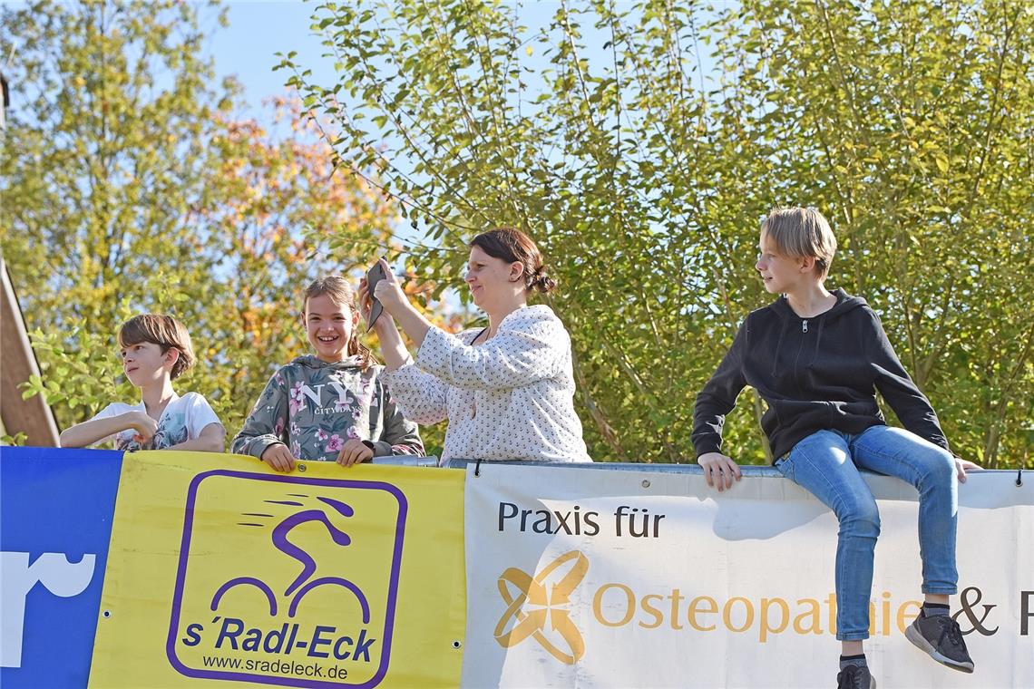 Während das Hauptfeld über die Marathondistanz mit 82,8 Kilometern dreimal die Strecke bewältigen muss, geht es in weiteren Rennen mit zwei beziehungsweise einer Runde über 55,2 und 27,6 Kilometer. Einer, der sich auf die Strecke über 27,6 Kilometer wagt, ist Herbert Häußer vom RSV Unterweissach. Mit 70 Jahren ist er der Älteste im gesamten Teilnehmerfeld. Und nicht alle Starter sind immer im Bilde: Am Ende der zweiten Runde biegt einer der Fahrer auf die Zielgerade ab und muss nach dem Zieleinlauf darüber aufgeklärt werden, dass er noch eine Runde zu fahren hat.