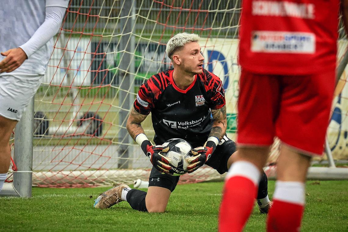 Backnangs Torwart Enrico Caruso hält seinen Kasten bislang sauber. Foto: Alexander Becher