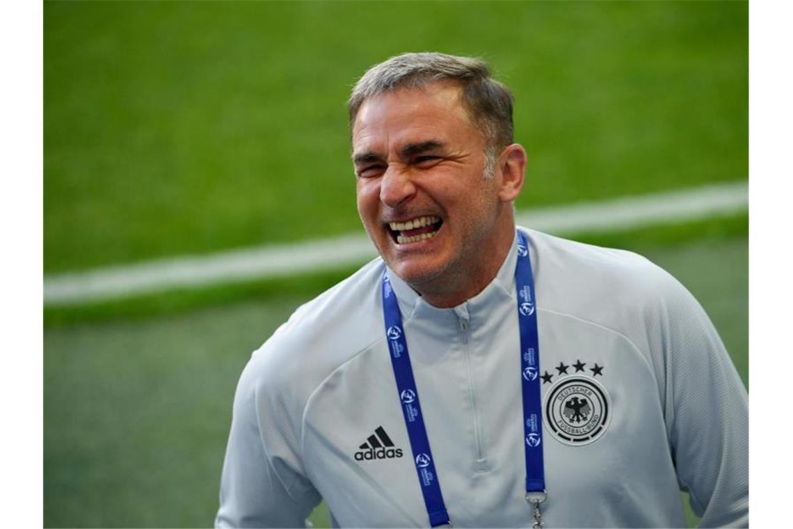 Zeigte sich beim Abschlusstraining in bester Laune: U21-Trainer Stefan Kuntz. Foto: Marton Monus/dpa