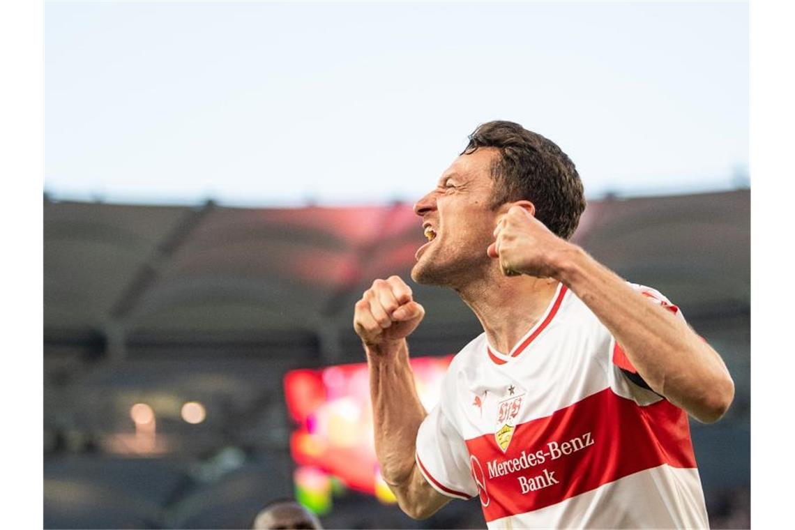 dpa Stuttgart. Jetzt wird es ganz eng für den VfB! Im Relegations-Hinspiel reicht es für die Stuttgarter nur zu einem 2:2 gegen Union Berlin. Am Montag folgt das Rückspiel an der Alten Försterei, wo die Berliner den ersten Bundesliga-Aufstieg der Club-Geschichte perfekt machen können.